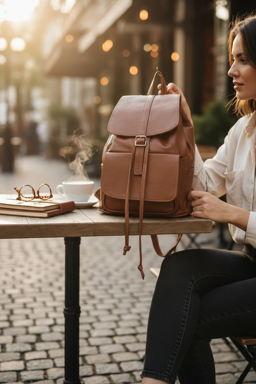 The Billy Jean leather backpack - where functionality meets fashion harmony. With it's innovative design featuring closing flaps and convenient bottle holders, this backpack brings the ideals of modern utility. Crafted from high quality leather, it exudes luxury while offering durability for your everyday adventures. Whether you're navigating the Urban Jungle or embarking on a countryside retreat, the Billy Jean backpack ensures you travel in style while keeping your essentials organised and accessible.