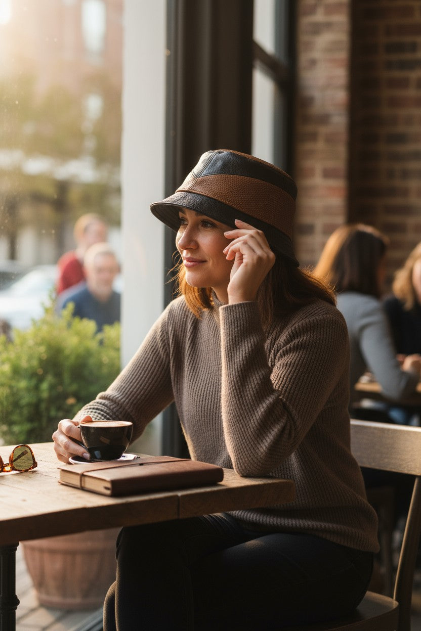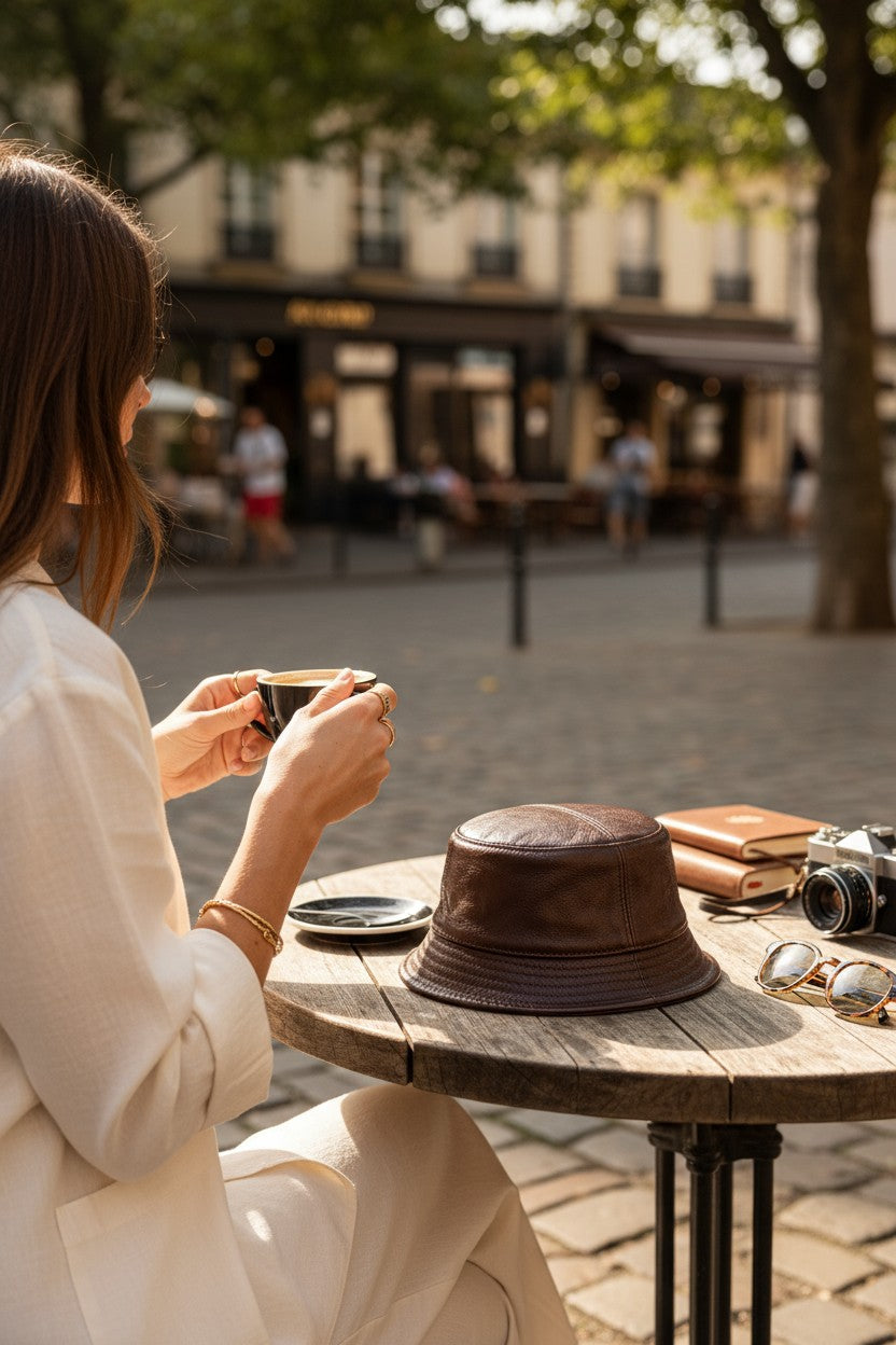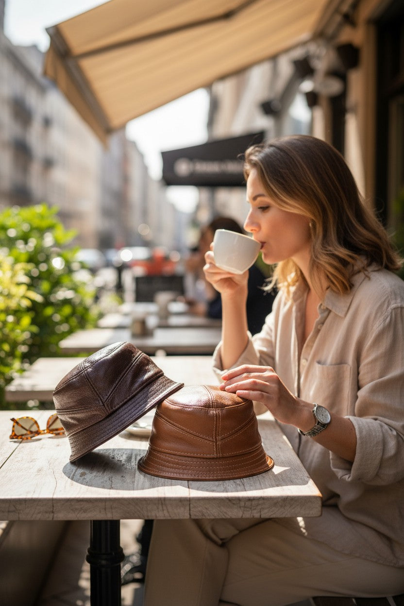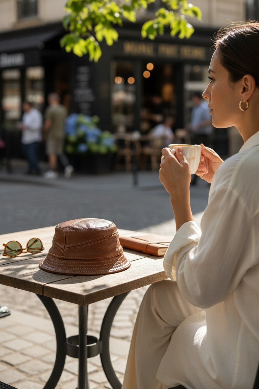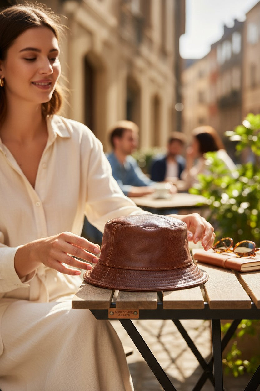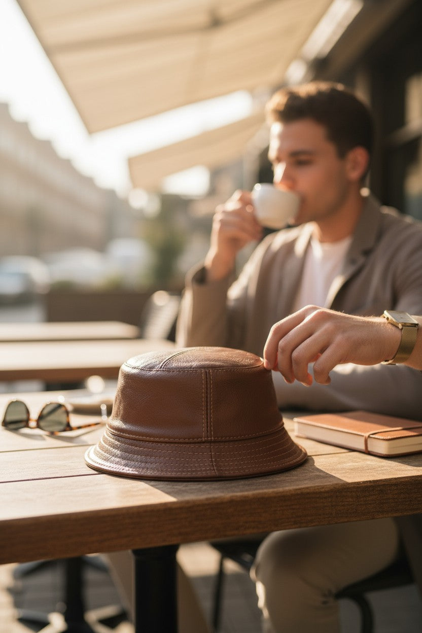 Introducing the definition of cool - our leather bucket cap, the ultimate blend of timeless style and contemporary flair. Made from luxurious leather, this hat is more than just an accessory - it is a statement piece. With it's classic silhouette and buttery-soft feel, it adds an instant touch of sophistication to any outfit. Embrace the lure of effortless style with our leather bucket hat - because some classics never go out of fashion.