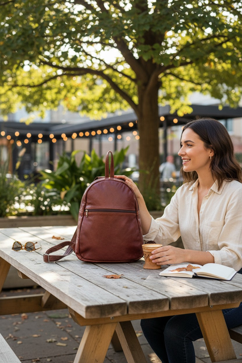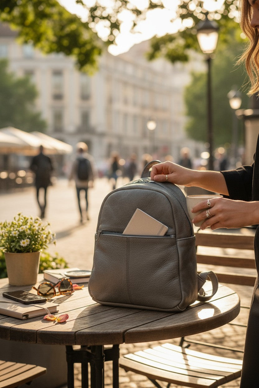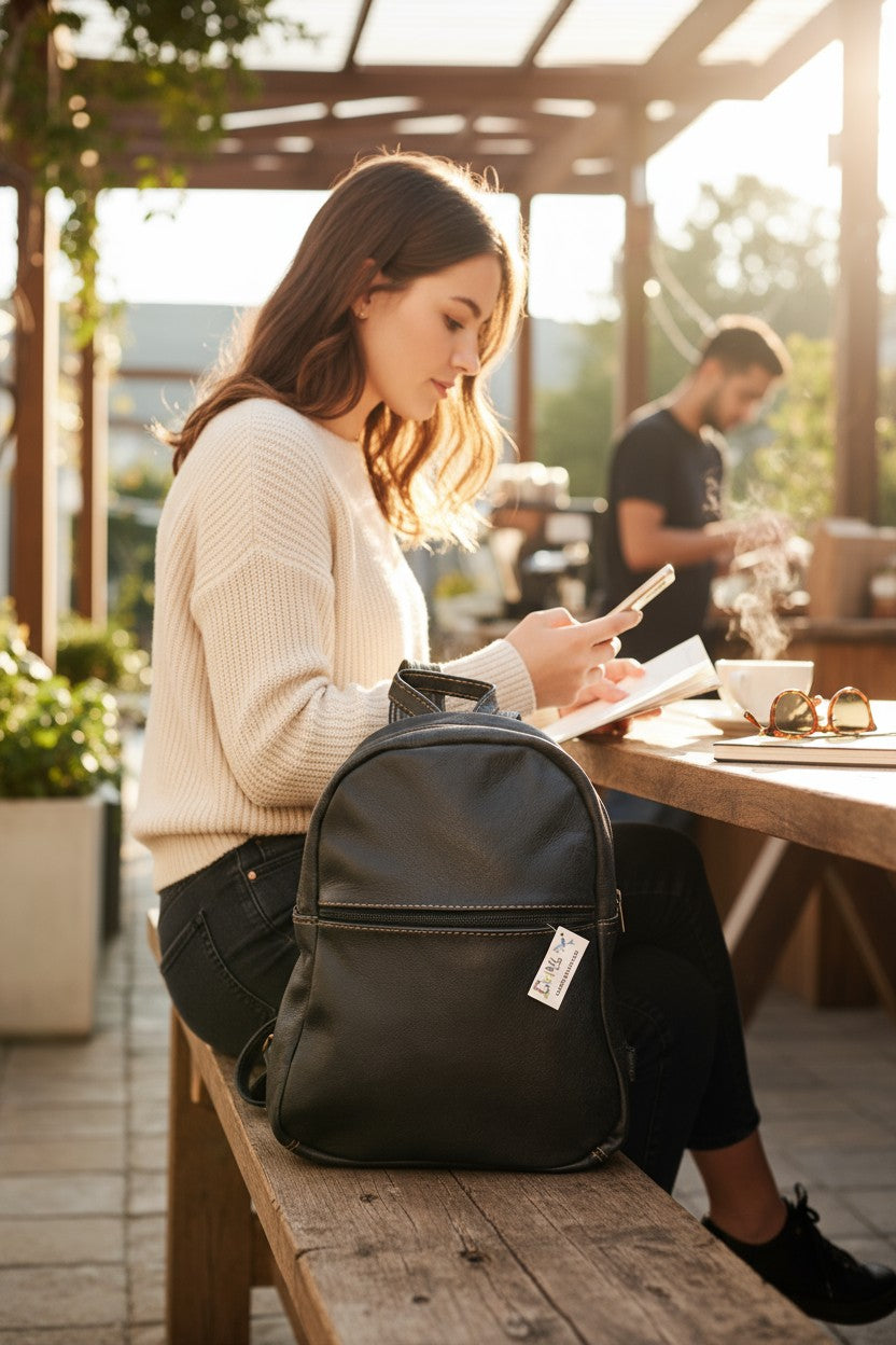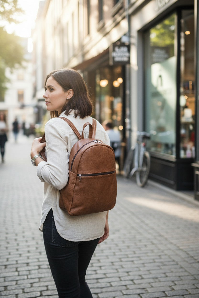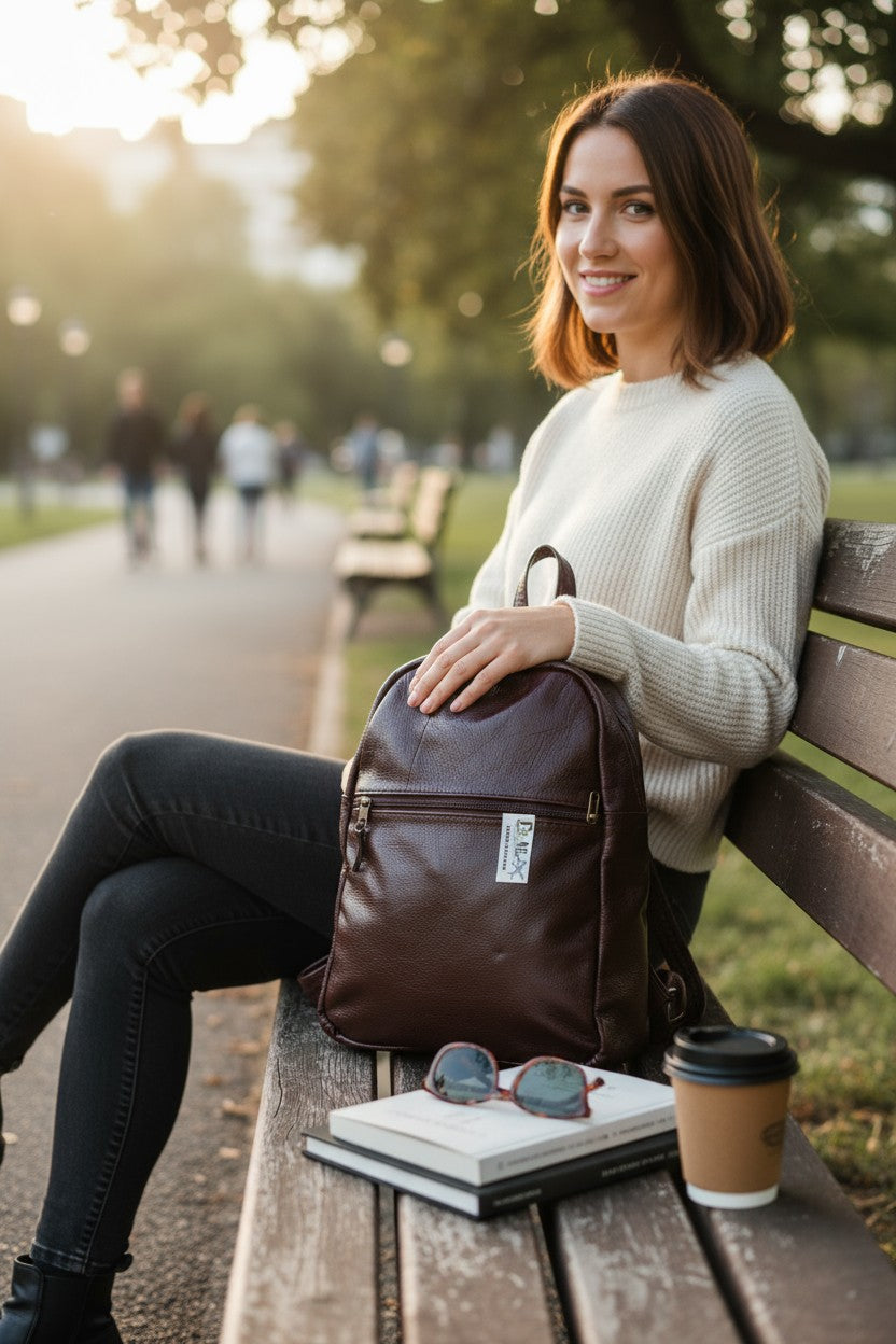 The Carrie Backpack - where versatility meets security in style. Crafted from genuine leather, this backpack is the definition of practical elegance. With adjustable straps for personal comfort and an extra zip at the back for added safety, it is designed to accompany you on all your adventures, from bustling city life to tranquil nature trails, the Carrie Backpack keeps all your goodies secure while allowing you to move freely and confidently. When it comes to both fashion and safety - compromise is never an option.