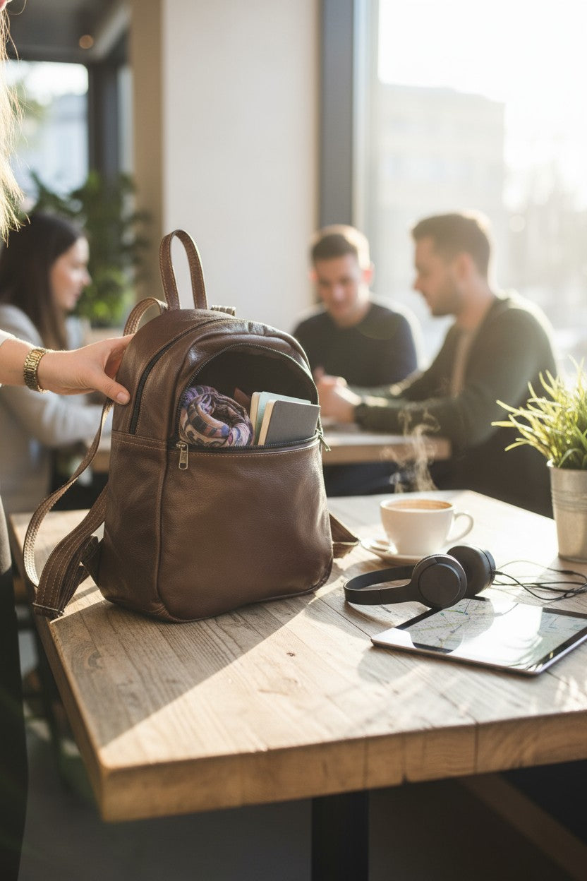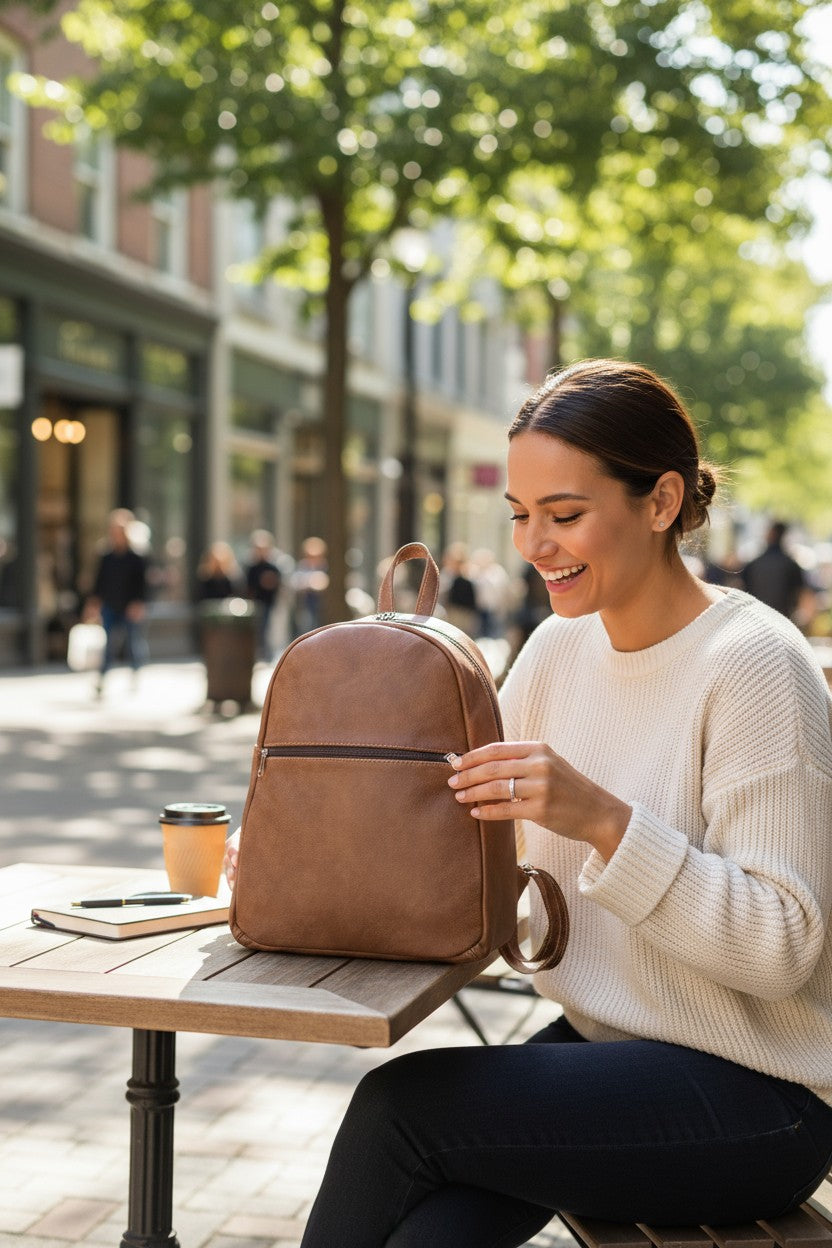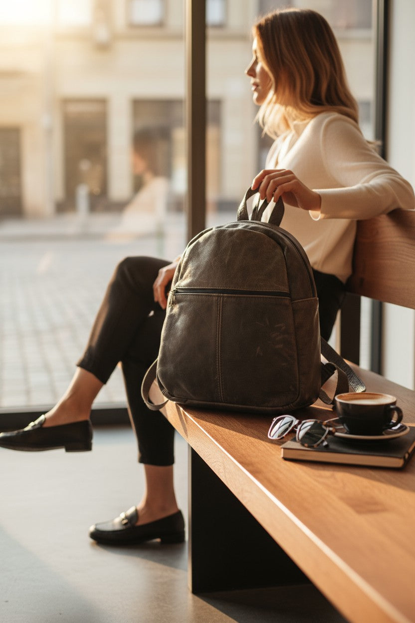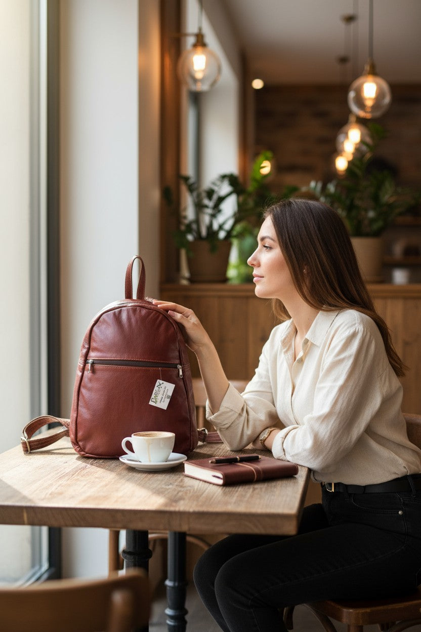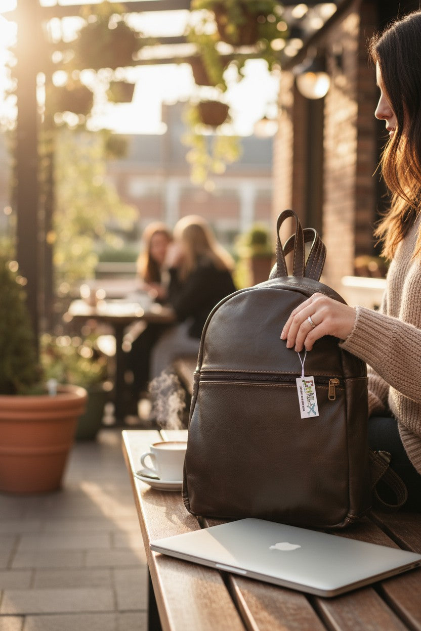 The Carrie Backpack - where versatility meets security in style. Crafted from genuine leather, this backpack is the definition of practical elegance. With adjustable straps for personal comfort and an extra zip at the back for added safety, it is designed to accompany you on all your adventures, from bustling city life to tranquil nature trails, the Carrie Backpack keeps all your goodies secure while allowing you to move freely and confidently. When it comes to both fashion and safety - compromise is never an option.